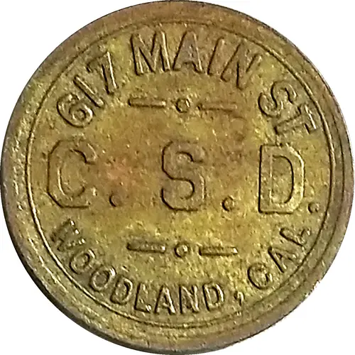 | Obverse lettering | 617 MAIN ST C. S. D. WOODLAND, CAL |
