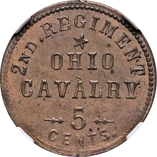 | Obverse lettering | 2ND. REGIMENT OHIO CALVARY 5 CENTS |