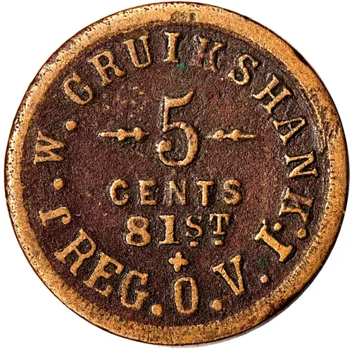 | Obverse lettering | J.W. Cruikshank 5 Cents 81st Reg O.V.I |