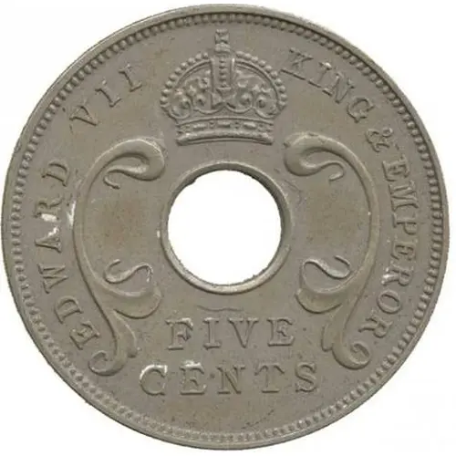 Artistry: The artistry reflects the prevailing Edwardian classical style, characterized by dignified realism. The obverse likely features the familiar bare head effigy of King Edward VII facing right, a design typically executed by the Royal Mint’s chief engravers, such as George William de Saulles or his successor Frank Bowcher. The reverse design would present the denomination "5 CENTS" alongside "EAST AFRICA" and the date "1907", often within a simple wreath, emphasizing clarity and legibility.