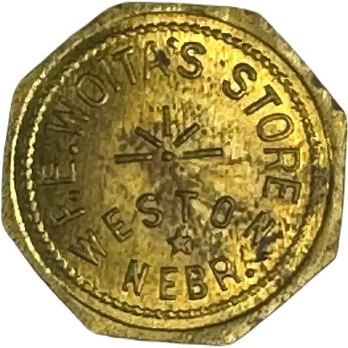 | Obverse lettering | F.E. WOITA`S STORE WESTON, NEBR. |