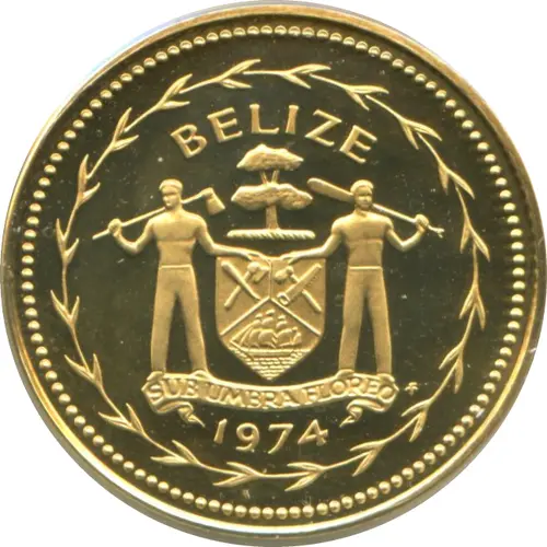 | Obverse lettering | BELIZE SUB UMBRA FLOREO 1974 FM (Translation: I flourish in the shade.) |