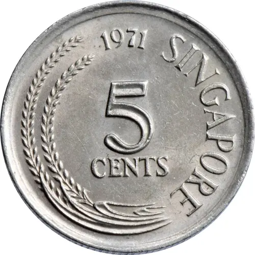 Obverse lettering 1971 SINGAPORE 5 CENTS