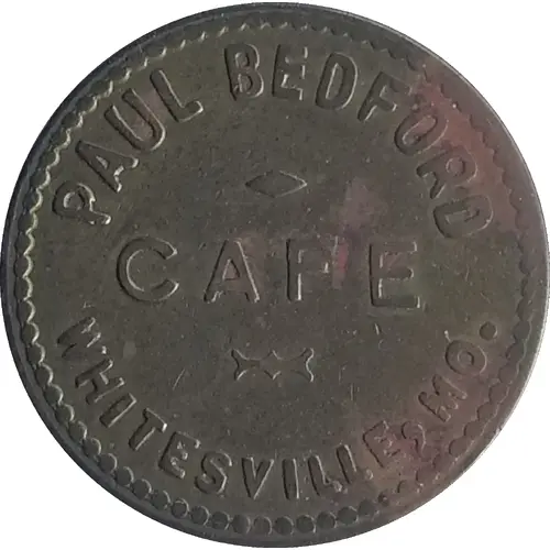| Obverse lettering | PAUL BEDFORD CAFE WHITESVILLE, MO. |