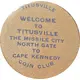 | Reverse lettering | Titusville on Welcome to Titusville The middle city North gate to Cape Kennedy in center Coin club |