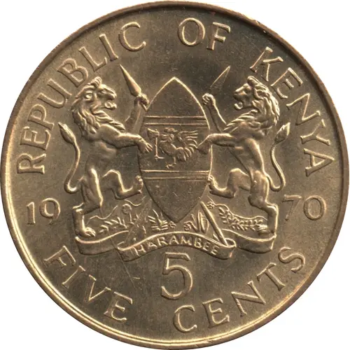 REPUBLIC OF KENYA 1970 HARAMBEE 5 FIVE CENTS (Translation: All pull together.) |