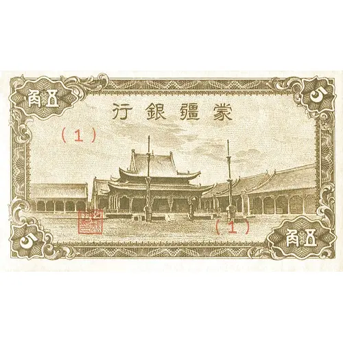 行銀疆蒙 角五 5 5 角五 (Translation: Mengchiang Bank Five Chiao.) |