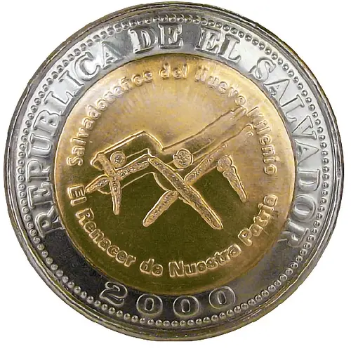| Legenda del dritto | REPÚBLICA DE EL SALVADOR SALVADOREÑOS DEL NUEVO MILENIO EL RENACER DE NUESTRA PATRIA 2000 (Translation: Republic of El Salvador Salvadorians of the New Millennium The Rebirth of Our Homeland) |
