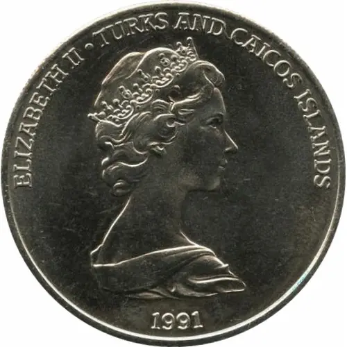 | Obverse lettering | ELIZABETH II · TURKS AND CAICOS ISLANDS 1991 |
