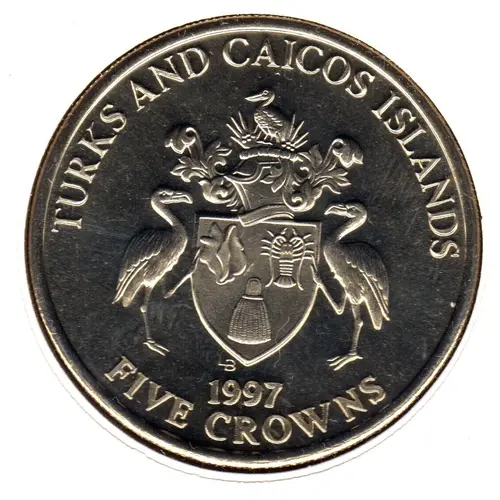 | Obverse lettering | TURKS AND CAICOS ISLANDS LB 1997 FIVE CROWNS |