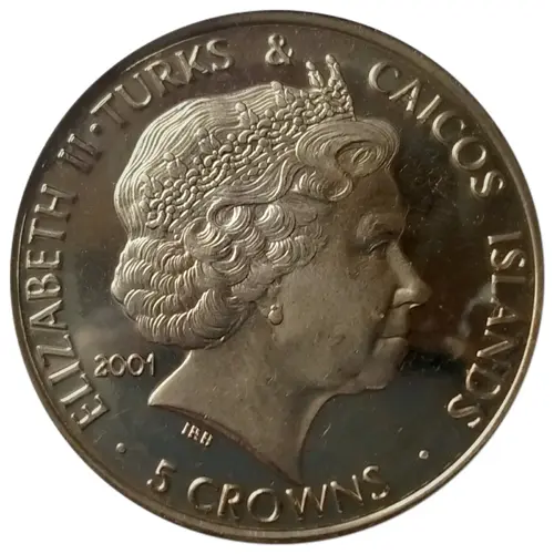 | Obverse lettering | ELIZABETH II·TURKS & CAICOS ISLANDS 2001 IRB · 5 CROWNS · |