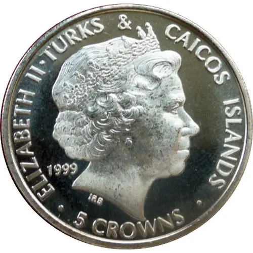 | Obverse lettering | ELIZABETH II · TURKS & CAICOS ISLANDS · 5 CROWNS · 1999 IRB |