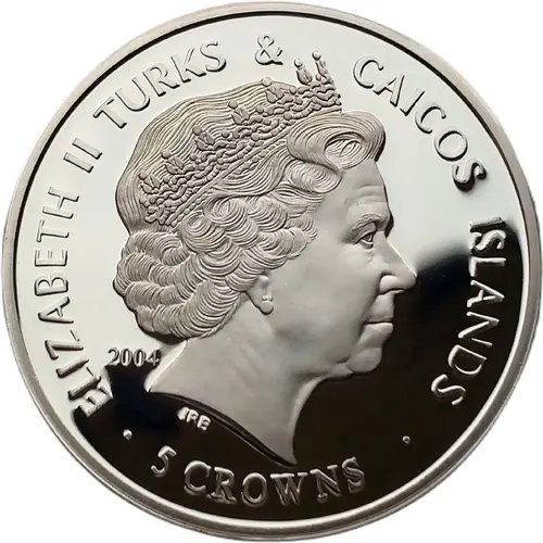 | Obverse lettering | ELIZABETH II TURKS & CAICOS ISLANDS 2004 IRB · 5 CROWNS · |