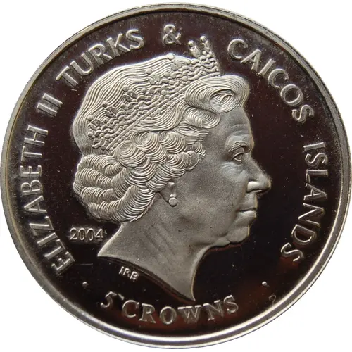 | Obverse lettering | ELIZABETH II TURKS & CAICOS ISLANDS 2004 IRB · 5 CROWNS · |