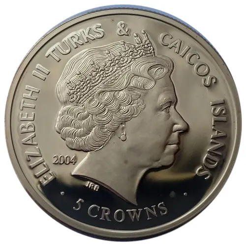| Obverse lettering | ELIZABETH II TURKS & CAICOS ISLANDS 2004 IRB · 5 CROWNS · |