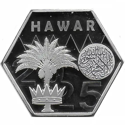 Описание аверса Palm tree with a crown at the base. Arabic text in a circle. Date.