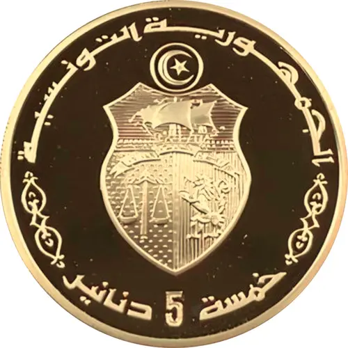 | Obverse lettering | الجمهورية التونسية خمسة 5 دنانير (Translation: The Tunisian Republic 5 Dinars) |