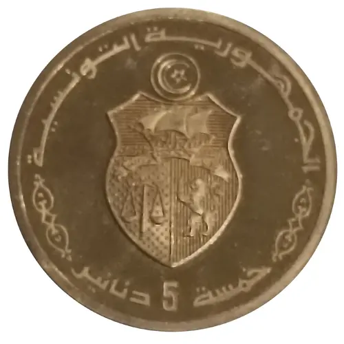 | Obverse lettering | الجمهورية التونسية خمسة 5 دنانير (Translation: The Tunisian Republic 5 Dinars) |