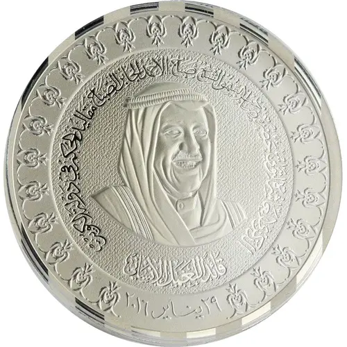 | Obverse lettering | الذكرى العاشرة لتولي حضرة صاحب السمو الشيخ صباح الأحمد الجابر الصباح مقاليد الحكم في دولة الكويت قَائِداً للعملِ الإنساني ٢٩ يناير ٢٠١٦ (Translation: The 10th anniversary of the proclamation of His Highness Sheikh Sabah Al-Ahmad Al-Jaber Al-Sabah as the Emir of the State of Kuwait Leader of humanitarian work 29 January 2016) |