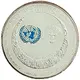| Reverse description | UN logo in blue (world map in wreath). The Emblem of Kuwait, consisting of the shield of the flag design superimposed on a falcon (Hawk of Quraish) with wings displayed. The falcon supports a disk containing a boom sailing ship, a type of dhow, with the full name of the state written in Arabic at the top of the disk. Occasion in English, and value in Arabic and English. |
