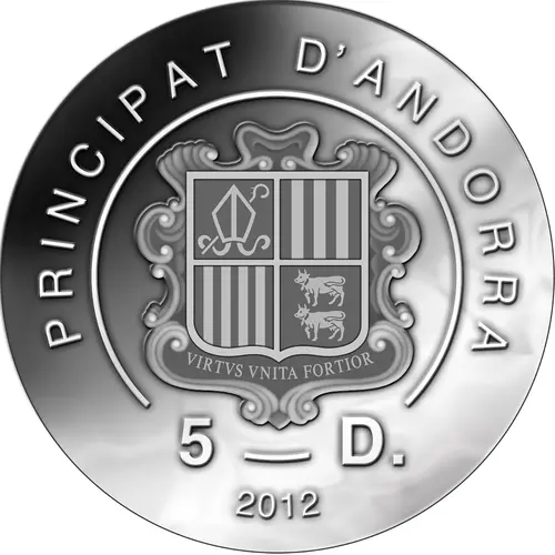 | Obverse lettering | PRINCIPAT D`ANDORRA VIRTVS VNITA FORTIOR 5 D. 2012 (Translation: Principality of Andorra United virtue is stronger) |