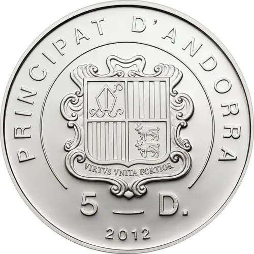 | Averslegende | PRINCIPAT D`ANDORRA VIRTVS VNITA FORTIOR 5 D. 2012 (Translation: Principality of Andorra United virtue is stronger) |