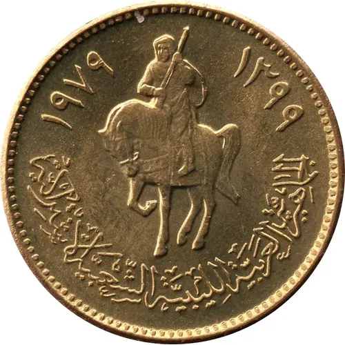 | Legenda awersu | ١٣٩٩ ١٩٧٩ الجماهيرية العربية الليبية الشعبية الاشتراكية (Translation: 1399 1979 People`s Socialist Libyan Arab Jamahiriya) |