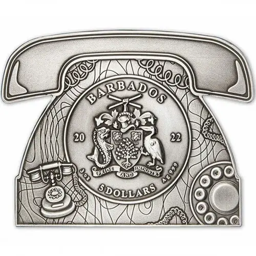 表面の銘文 BARBADOS 20 22 3 oz 5 DOLLARS Ag 999