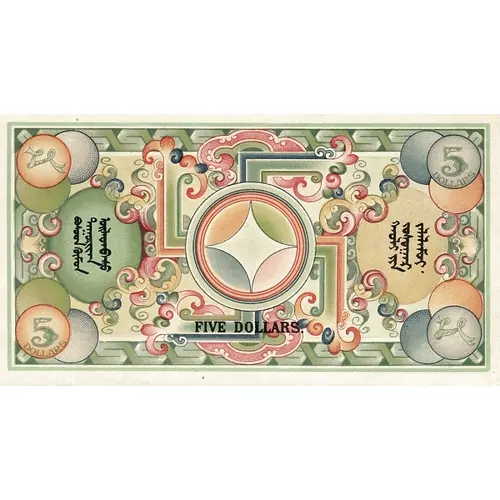 | Obverse lettering | ᠪᠤᠰᠤᠳ ᠬᠦᠮᠦᠨ ᠳᠠᠭᠤᠷᠢᠶᠠᠨ ᠦᠢᠯᠡᠳᠪᠡᠰᠦ ᠬᠠᠤᠯᠢ ᠶᠣᠰᠣᠭᠠᠷ ᠢᠯᠠᠯᠤᠮᠤᠢ FIVE DOLLARS (Translation: Anyone who counterfeit will be prosecute by law) |