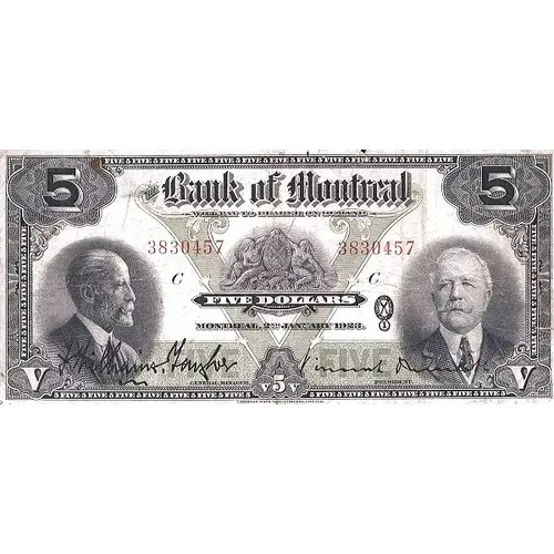 | Obverse lettering | The Bank of Montreal WILL PAY TO THE BEARER ON DEMAND MONTREAL, 2ND JANUARY 1923 Williams-Taylor - Meredith |