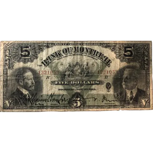 | Obverse description | Black on olive-green. Sir Frederick Williams-Taylor, general manager, on the left. Bank crest at center. Vincent Meredith, president, on the right. |