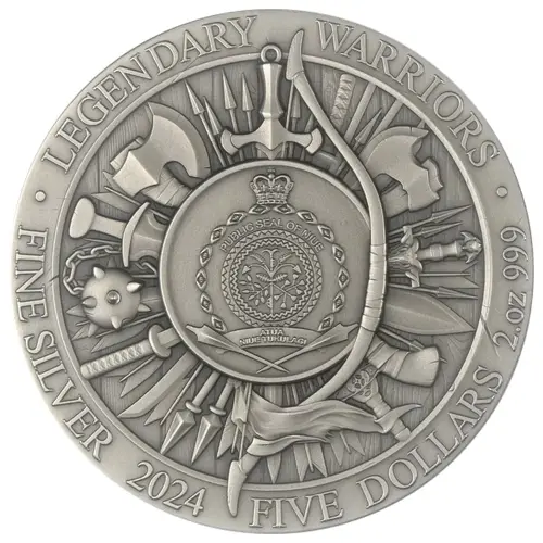 | Obverse lettering | LEGENDARY WARRIORS PUBLIC SEAL OF NIUE ATUA NIUE TUKULAGI · FINE SILVER 2024 FIVE DOLLARS 2.oz 999 · |