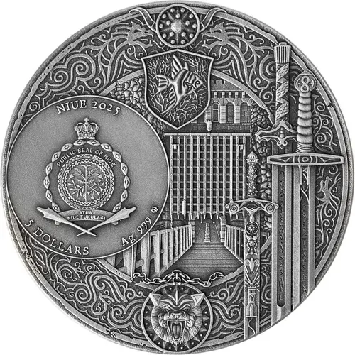 | نوشتههای روی سکه | NIUE 2025 PUBLIC SEAL OF NIUE ATUA NIUE TUKULAGI 5 DOLLARS Ag 999 mw |