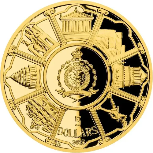 | Obverse description | Public Seal of Niue surrounded by the Seven Wonders of the Ancient World |