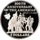 | Reverse lettering | 500TH ANNIVERSARY OF THE AMERICAS · October 12, 1492 ·A·SH· 5 DOLLARS |
