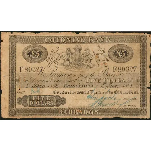 | Obverse lettering | COLONIAL BANK BARBADOS |