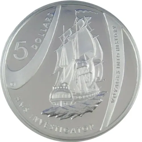 | Reverse lettering | 5 DOLLARS VOYAGES INTO HISTORY HMS SIRIUS |