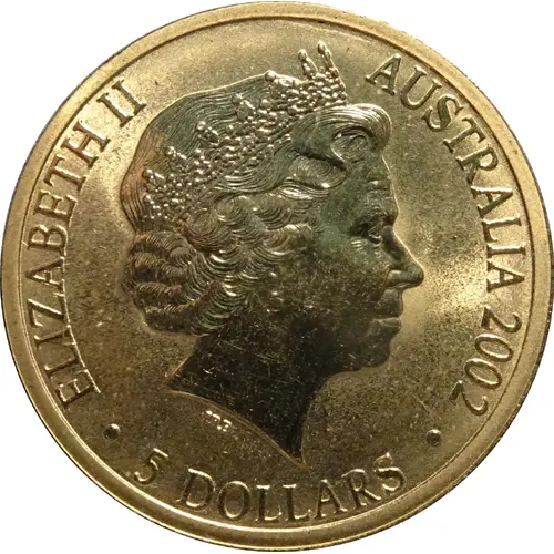 | Obverse lettering | ELIZABETH II AUSTRALIA 2002 5 DOLLARS IRB |