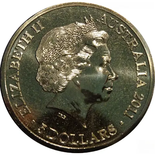 | Obverse lettering | ELIZABETH II AUSTRALIA 2011 5 DOLLARS IRB |