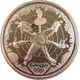 | Reverse description | Seven figures positioned like spokes in a wheel, colored Olympic logo at bottom |