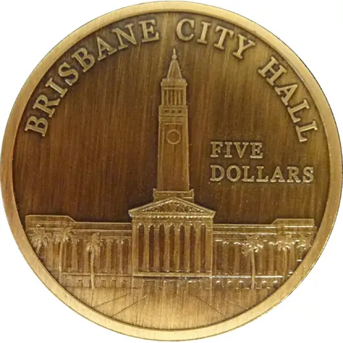 | Reverse description | Front view of Brisbane City Hall complete with palm trees |