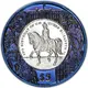 | Reverse description | Young Queen ridding a horse at center; different buildings and places visited by the Queen on the ring. |