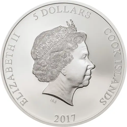 | Obverse lettering | ELIZABETH II 5 DOLLARS COOK ISLANDS IRB 2017 |