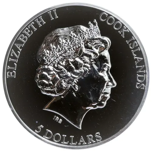 | Obverse lettering | ELIZABETH II COOK ISLANDS IRB 5 DOLLARS |
