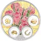 The surface is adorned with lovely colorful tulips and four transparent capsules containing Silver filigree inserts. The inserts include the four-leaf clover, horseshoe, elephant and ladybird. |