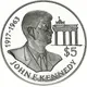 | Reverse description | Bust of John F. Kennedy to the right, a part of Brandenburg Gate in Berlin (with 4 columnes) at right. |