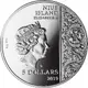 | Obverse lettering | NIUE ISLAND ELIZABETH II Ag 999 IRN mw 5 DOLLARS 2019 |
