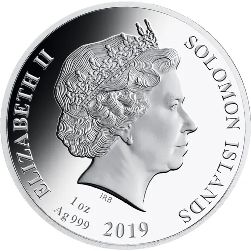 Obverse lettering ELIZABETH II SOLOMON ISLANDS IRB 1 oz Ag 999 2019