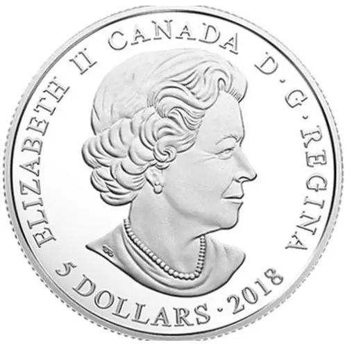 | Obverse lettering | ELIZABETH II CANADA D·G·REGINA 5 DOLLARS 2018 (Translation: Elizabeth II Queen by the grace of God) |