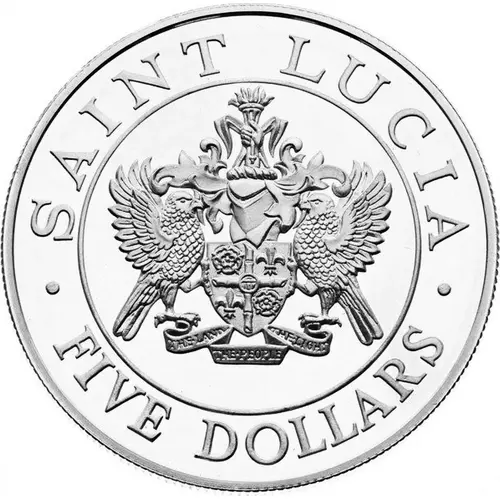 | Legenda del dritto | · SAINT LUCIA · THE·LAND THE·PEOPLE THE·LIGHT FIVE DOLLARS |
